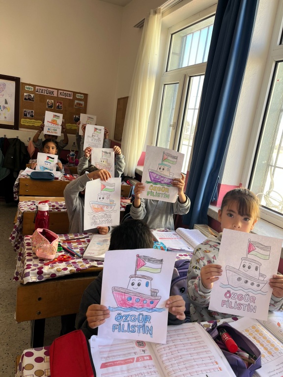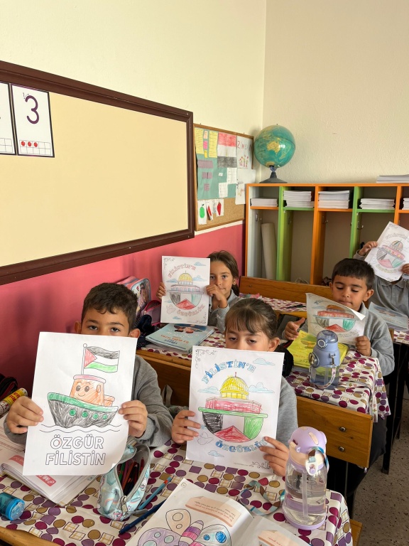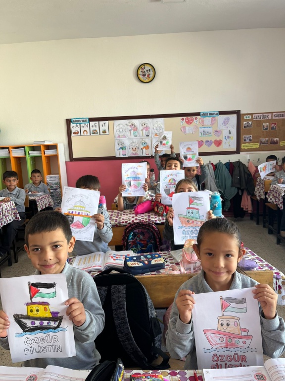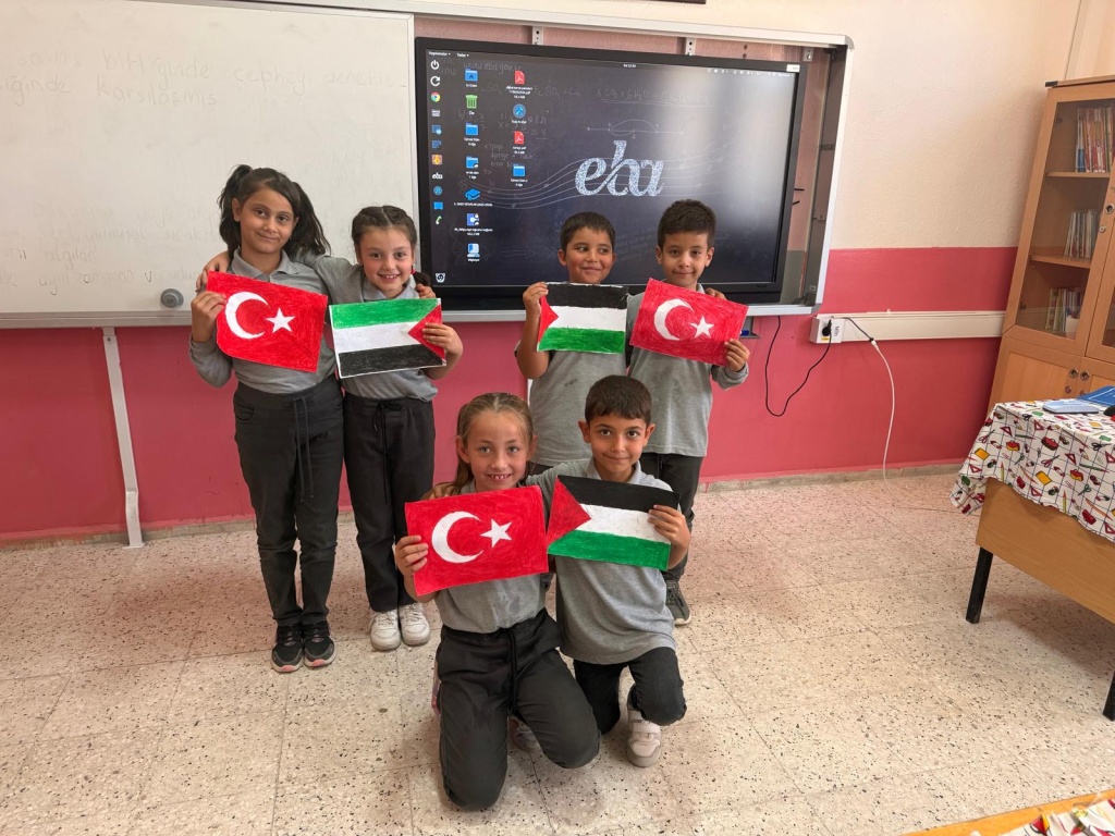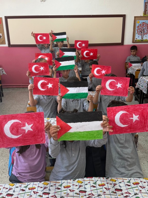 Gönüllerimizde daima “tarihte bugün” öneminde olan “Filistin” halkı ve yaşam başta olmak üzere her türlü haklarından mahrum edilen Gazzeli masum çocuklar için bugün tüm okullarımızda evlatlarımız ve öğretmenlerimizle haykırdık: